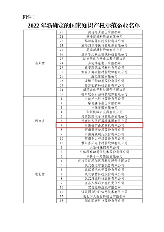 10月31日,国家知识产权局发布了《关于确定2022年新一批及通过复核的国家知识产权示范企业和优势企业的通知》,河南zoty中欧·(中国)体育官方网站荣获“2022年国家知识产权示范企业”荣誉称号。