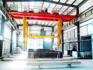 加气混凝土起重机是专门用来吊运混凝土模具和坯体的专*起重机,由箱形桥架、大车运行机构、起升机构及电气设备四部分组成,配合专*吊具,完成模具的翻转、开模和脱模等工作。