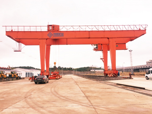 本起重机专*于铁路货场装卸、堆放20、40及45英尺*际标准集装箱。本机配备伸缩式集装箱吊具,用于吊运不同规格集装箱。吊具的开闭锁动作和伸缩由司机在操纵室操作。同时,为了适应不同的集装箱堆放方向和集装箱拖车行走方向,集装箱吊具可设计有旋转机构,可使集装箱任意旋转,以提高装卸效率。